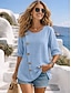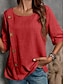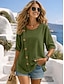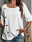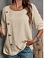 Dames Blouse Overhemd van imitatie linnen Knop Effen Kleur Stijlvol Basic Casual Halve mouw Strakke ronde hals Normale tops Dagelijks blauw Zwart Wit Leger Groen Rood Zomer Lente Herfst