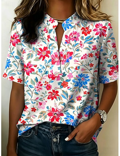 Dames Blouse Knop Afdrukken Bloemig Grafisch Vintage Stijlvol Modern Halve mouw Overhemdkraag Normale tops Casual Dagelijks blauw Geel Rood Paars Zomer Lente