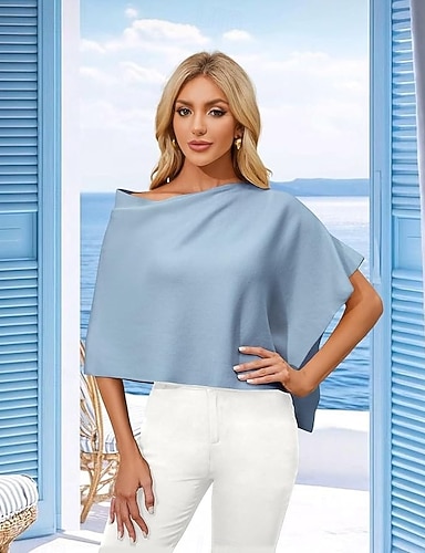 Balearische eilanden blauwe zijdeachtige satijnen top met vleermuismouwen