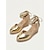 Gouden damessandalen met open teen en lage hak, elegante instapschoenen voor bruiloftsgasten, tuinbruiloft &buitenevenementen