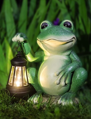Waterdichte, realistische kikkerlantaarn van hars voor buiten, op zonne-energie, decoratieve ledlamp voor tuin, erf, gazon, pad, terras, villa – zomerse sfeer &landschapsverlichting