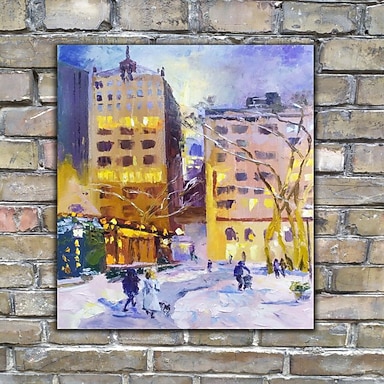 handgemaakte olieverf canvas kunst aan de muur decoratie impressie gebouw winter straatbeeld voor home decor gerold frameloze niet-uitgerekt schilderij