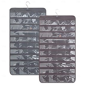 hangende organizertas voor sieraden met 80 vakken - dubbelzijdig draaibare haak voor kettingen, oorbellen, stofdicht aan de muur gemonteerd displayzakje voor accessoires