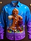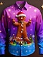 Kerstmis Voor heren Overgangskleur grappige kerst peperkoek man Overhemd Overhemd met knopen Lange mouw Grappig Buiten Feestdagen Lente Herfst Strijkijzer 3D-afdrukken shirts met kraag Rood Paars