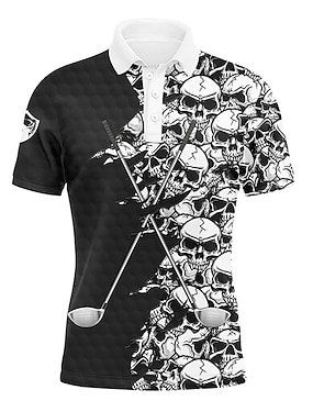 Voor heren Doodskoppen Sport Poloshirts Golfshirt Korte mouw Poloshirt Overhemden met kraag Casual Sportkleding Vakantiekleding 3D-afdrukken Knop blauw Zwart Wit