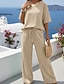 15% linnen dames linnen sets linnenmix tweedelige sets basic effen kleur zak elastische taille t-shirt broek streetwear dagelijks lange mouwen ronde hals zwart wit marineblauw lichtbruin blauw zomer lente