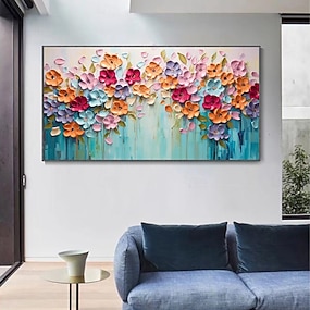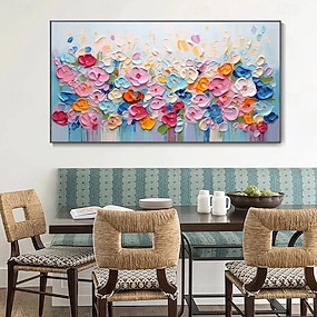 handgemaakte originele 3D kleurrijke bloemen schilderij olieverfschilderij op canvas abstracte bloemen wandkunst voor huisdecoratie met gespannen frame/zonder binnenframe schilderij