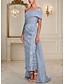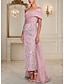 Trompet / zeemeermin Asymmetrisch Tot de grond Cocktailjurken Galajurken Avondjurken Baljurk Elegant Glitter Lange mouw Schouderafhangend Formeel Bruiloft Stretch crêpe met Ruches
