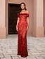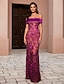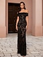 Trompet / zeemeermin Strak / kolom Tot de grond Galajurken Avondjurken Baljurk Formele kleding Elegant glinsterende Celebrity-Stijl Korte mouw Schouderafhangend Formeel Bruiloft Pailletten Fluweel