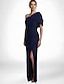 Strak / kolom Tot de grond Galajurken Avondjurken Baljurk Formele kleding Elegant minimalistische Lange mouw Eén-schouder Schoolfeest Formele avonden Herfst bruiloftsgast Stretchstof met Slank Split