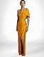 Strak / kolom Tot de grond Galajurken Avondjurken Baljurk Formele kleding Elegant Korte mouw Eén-schouder Formeel Bruiloft Satijn met Strik(ken)