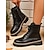 Zwarte imitatieleren gevechtslaarzen voor dames, klassieke veter- en enkellaarsjes met dikke zool, perfect voor herfstoutfits, buitenwandelingen en streetwearlooks