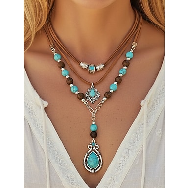 Dameskettingenset in bohemian stijl met legering en turkoois, een gelaagd statement sieraad voor strandvakanties, resortkleding, casual zomeroutfits en alledaagse boho-stijlen.
