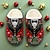 Damesschoenen in Edwardiaanse stijl uit de jaren 20 met rode ruitjes en zwarte satijnen strik – elegante retro-kerstschoenen voor feestelijke gelegenheden en partijen