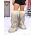 Dames kniehoge laarzen van imitatiebont – zwart-witte print, comfortabele winterschoenen voor modieuze koude weersomstandigheden en vakantiestijl