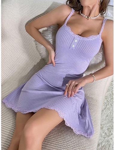 Dames Nachtjapon Casual Comfortabel Heldere kleur Kant Dagelijks Huis Mouwloos hihnat blauw Zwart Blozend Roze Paars Groen Zomer Lente Normale pasvorm