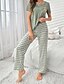 Dames Pyjamaset Casual Comfortabel Gestipt Elastische taille Korte broek Dagelijks Huis Korte mouw Strakke ronde hals blauw Blozend Roze Paars Groen Zomer Lente Normale pasvorm