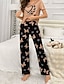Dames Pyjama Set Loungekleding Ronde Hals Lange Mouw Casual T-shirt Broek Sets Print Buiten Sporten Dagelijks Zwart Lente Herfst Thuis Outfits