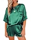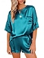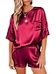 dames pyjama set satijnen inkeping kraag korte mouw elastische taille thuis loungewear bordeaux zijde-achtige nachtkleding alle seizoenen comfort fit