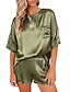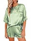dames pyjama sets 4 stuks pure kleur eenvoudig casual zacht thuis dagelijks bed satijn ademend v draad lange mouwen shorts zomer lente thuis outfits
