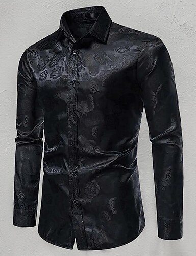 Voor heren Smoking overhemden Bloemig Buiten Feest Wijn Zwart Wit Donkerblauw Lange mouw Strijkijzer Lente Herfst Kleding Afdrukken
