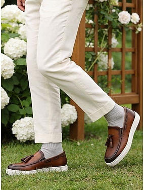 Bruine casual trouwschoenen voor heren – comfortabele instappers voor tuinfeesten, buitenbruiloften en zomerevenementen.