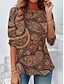 Dames T-shirt Afdrukken Grafisch Paisley Modieus Stijlvol Klassiek Lange mouw Strakke ronde hals Normale tops Dagelijks Weekend Vakantiekleding blauw Zomer Lente Herfst