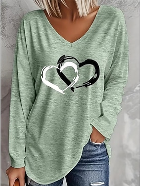 Valentijnsdag Dames T-shirt Afdrukken Hart Grafisch Vintage Stijlvol Klassiek Lange mouw V-hals Lange tops Dagelijks blauw Groen Lente Herfst