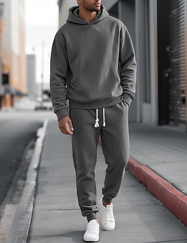 Voor heren Trainingspak Kledingset Truien instellen Capuchon Buiten Dagelijks Sport Jacquard Trekkoord Effen Zwart Wit Khaki Sportkleding Modieus Streetwear Lente