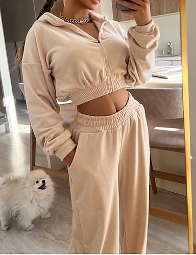 Dames 2-delig trainingspak Lounge Hoodie Trainingspaksets Effen Sportoutfits Herfst winter Roze Blauw Sportschool Training Hardlopen Hoge taille Lichtgewicht Modieus Lange mouw Sport Sportkleding