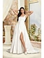 Hallen Casual Eenvoudige Trouwen Jurken Sheath Off Shoulder Cap Mouw Court Train Satijnen Bruidsjurken Met Gerimpelde Split Voorzijde