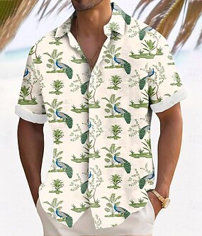 Voor heren Vogel Pauw Tropische planten Hawaiiaans overhemd Overhemd met knopen Aloha-shirt Korte mouw Hawaii Vakantie Feestdagen Strand Kleding Zomer Lente Strijkijzer 3D-afdrukken shirts met kraag