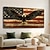 Steenarend Met Amerikaanse Vlag Wandkunst - Patriotische Adelaar Zittend Op Tak Rustieke Schilderij Canvasprint - Ingelijst Of Ongelijst Klaar Om Op Te Hangen