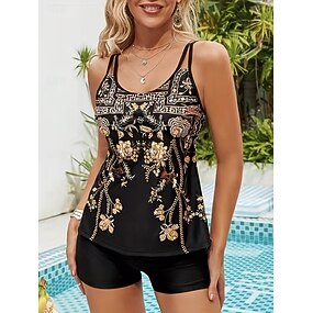 Dames Tankini 2 Delig Badpak Kleurblok Shorts Buikcontrole Hoge Taille Slank Rugloos Vakantie Strandkleding Bloemen U Hals Mouwloos Badpakken