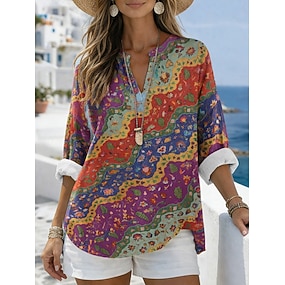 Dames Blouse Afdrukken Bloemig Vakantie Dagelijks Casual 3/4 mouw V-hals Normale tops Dagelijks Feestdagen Uitgaan blauw Marine Blauw Paars Groen Zomer Lente Herfst