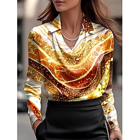 Dames Overhemd Knop Afdrukken Grafisch Geometrisch Actief Dagelijks Stijlvol Lange mouw Overhemdkraag Normale tops Dagelijks Feestdagen Oranje Lente Herfst