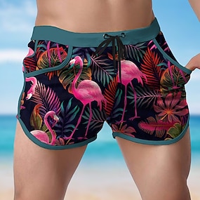 Voor heren Vogel Tropische bloemen Papegaai Lange zwembroeken Badpakken Zwembroeken Boardshorts Medium Taille Hawaii Strandvakantie Zijzakken Mesh voering Elastische tailleband met trekkoord Ontwerper