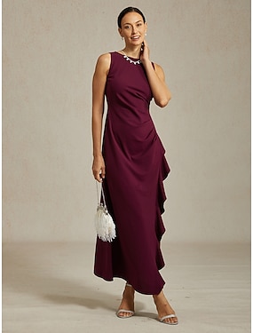 Dames Maxi-jurk Schede jurk Geplooide jurk Jurk met ruches Elegant Feest Semi-formele jurken Avond Feest Bruiloft gast valmistuminen Ruche Effen Kleur Mouwloos Strakke ronde hals Boothals Bordeaux