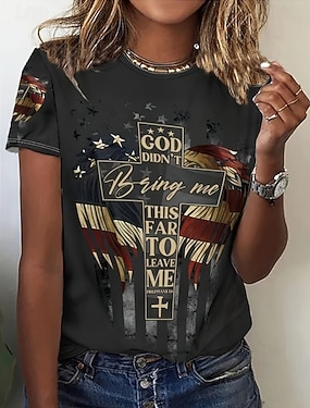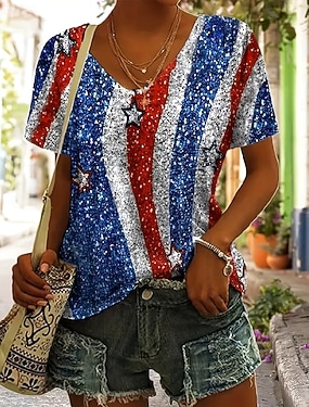 Dames T-shirt Afdrukken USA Casual Korte mouw V-hals Normale tops Vakantie Independence Day blauw Rood Marineblauw Khaki Zomer