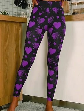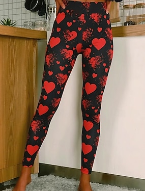 Dames Leggings Gezellige leggings Vakantie Casual Volledige lengte Hoge taillePantsValentijnsdag Hart Grafisch Opdrukken Comfort Comfortabel Rekbaar Casual Dagelijks Vakantie Wit Blozend Roze Rood