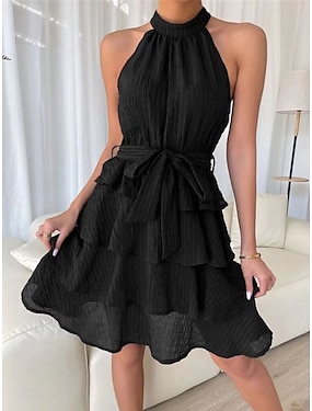 Dames Mini-jurk Zwarte jurk Afstudeerjurk Casual jurk Cocktail jurk Streetwear Basic Casual Vakantie Straat Feestdagen Normale pasvorm Mouwloos Halternek Zwart Rood blauw Paars Zomer