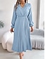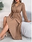 Dames Maxi-jurk A lijn jurk Casual Dagelijks Normale pasvorm Effen Lange mouw V-hals Wijn Marineblauw Licht Bruin blauw Lente Herfst Winter