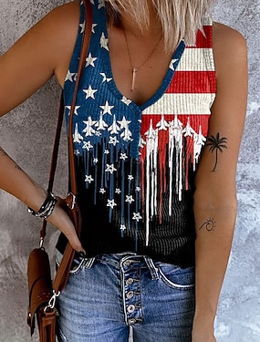 Onafhankelijkheidsdag Patriottische Dames Tanktop Grafische Vlag Vintage Tropisch Stijlvol Mouwloos V-hals Reguliere Tops Dagelijks Afdruk Blauw Zomer Lente