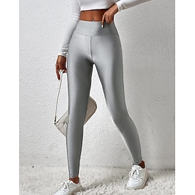 Dames Chinese Leggings Streetwear Casual Volledige lengte Middelhoge taille Effen Elastische taille Glanzend metallic Comfortabel Rekbaar Dagelijks Buiten Vakantie Zilver Kameel Zwart Koffie Herfst