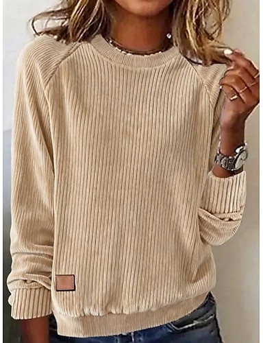 Dames Blouse Met ruches Effen Kleur Stijlvol Casual Lange mouw Strakke ronde hals Normale tops Dagelijks Kameel Lente Herfst Winter