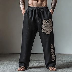 Voor heren Geometrisch patroon Etnisch Broek Wijde broek Vrijetijdsbroek Medium Taille Boho Vintage Retro Huis Buiten Vakantie Elastische tailleband met trekkoord Linnen broek met zakken Zomer Lente