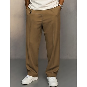 Voor heren Broek Pakken Zak Knop Effen Comfort Ademend Volledige lengte Casual Dagelijks Huis Vakantie Modieus Zwart Khaki Inelastisch