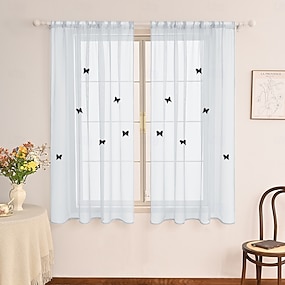 gordijngordijnen vlinderstijl oprolbare witte kantgordijnen - jacquard transparante gordijnen voor erker, keuken, deuropening &kamerverdeler