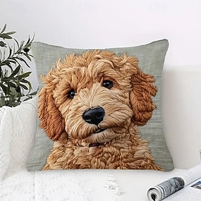 Grijze schattige teddybeer hond decoratieve kussensloop 2D plat bedrukt zacht kort pluche kussenhoes met nep borduurwerk voor bank slaapkamer woonkamer woondecoratie