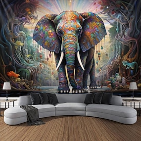 schilderij kleurrijke olifant boho hangend tapijt kunst aan de muur groot tapijt muurschildering decor foto achtergrond deken gordijn thuis slaapkamer woonkamer decoratie